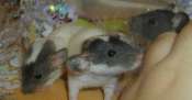 dessine-moi1rat 0 Posté(e) le 6 décembre 2009 Aurais-je oublier les photos et des infos .. fatigue derrière l'écran - 12€ par ratons. momo : http://dessine-moi1rat.e-monsite.com/rubrique,males-reproducteurs,276675.html capé loupé, agouti, standard, lisse date de naissance : 01/06/08 origine : capria x neige la portée : std/dumbo, ag/n, lisse, irish/hooded/capé/étoilé raton gardés : momo et liu, très bonne santé et bon caractères, ils observent avant d'agir, mais n'hésite plus à foncer ensuite ^^ ninoo : http://dessine-moi1rat.e-monsite.com/rubrique,femelles-reproductrices,276630.html hooded loupé, blazed, agouti, rex, dumbo date de naissance : 02/09 origine : fa-sauvetage d'une portée non sevré : l'ancien propriétaire à acheter la mère pleine en animalerie, voulais ce débarrassé des petits non sevrés. Ce sont mes rates qui ont terminer le sevrage de la portée, je m'en suis énormément occupé et ils sont par conséquences très proche de l'homme. Si je la propose à la reproduction, c'est qu'elle est vraiment incroyable, elle ne fera qu'une seule portée et ces ratons autorisé à la reproduction seront très peut. Pour des raisons évidente : généalogie et santé inconnue sa place : petite fofolle du groupe, pas de signe de dominance, ni soumission. santé : rien du tous, ses frères et sœurs non plus. Photos du 06 décembre, les ratons sont nommé par chiffre. les 3 Filles dispo : F5 F1 F2 les 5 malous dispo : M4 M7 M6-le masqué loupé M8 le capé loupé M3 masqué loupé-le premier à gauche les 6 réservés : m2 m9 m5 m1- premier à gauche f3 - en arrière plans f4 Partager ce message Lien à poster Partager sur d’autres sites