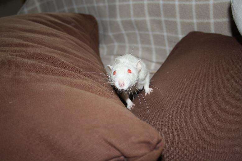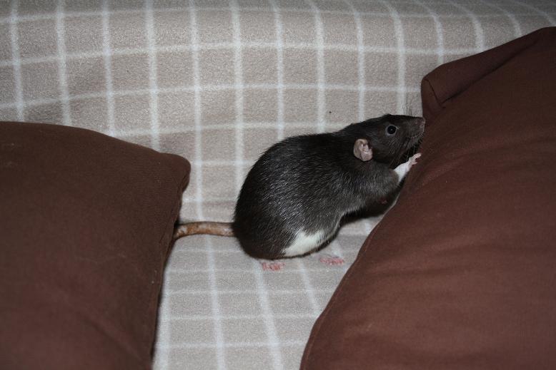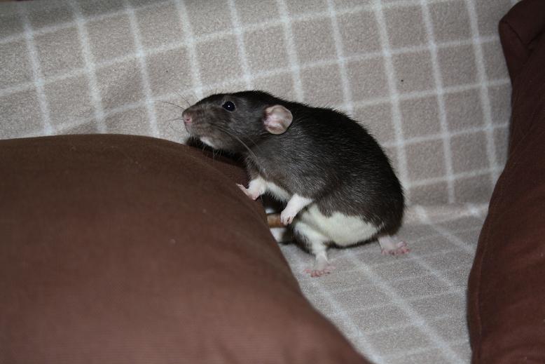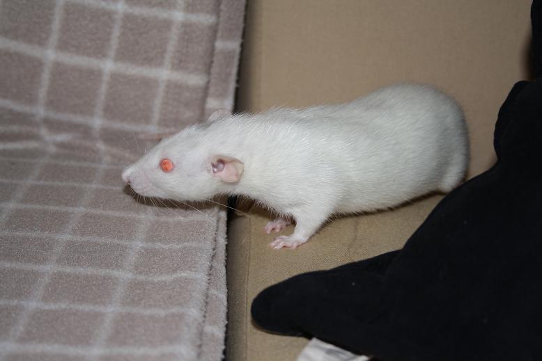 Becaria 0 Posté(e) le 13 novembre 2010 Hopla, séance photo de novembre pour fêter l'arrivée de nouvelles recrues... Honneur aux dames ^^WYS Daïkiri - Bleu Irish Dumbo - née chez Wystie, une vraie pile électrique qui, malgré sa cicatrice de guerre, est très vivace, exploratrice, curieuse.ABR Passoa - Beige Irish Etoilé Dumbo - née chez Goot, un peu plus discrète et timide pour le moment, mais elle a ses périodes "je me suspends aux barreaux et je fais tous les tours de la cage en mode chauve souris", c'est aussi la première a se poser pour faire un calin.Place aux messieurs et à l'individu surprise qui ne reste que jusqu'à mardi à la maison en attendant que maman Chnou vienne le récupérer, j'ai nommé ABR Speculos - Noir Irish/Berkshire micro-Etoilé Dumbo - frère d'ABR Passoa - né chez goot. Un peu timide au départ, il se rèvele aussi fin explorateur, mais il faut aussi savoir se poser de temps en temps (mâle attitude).Et les maitres de ces lieux, le trio infernal Partager ce message Lien à poster Partager sur d’autres sites