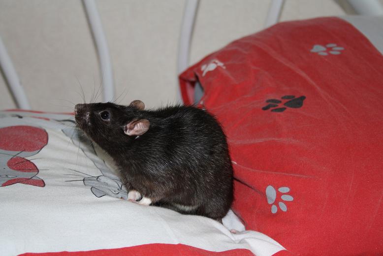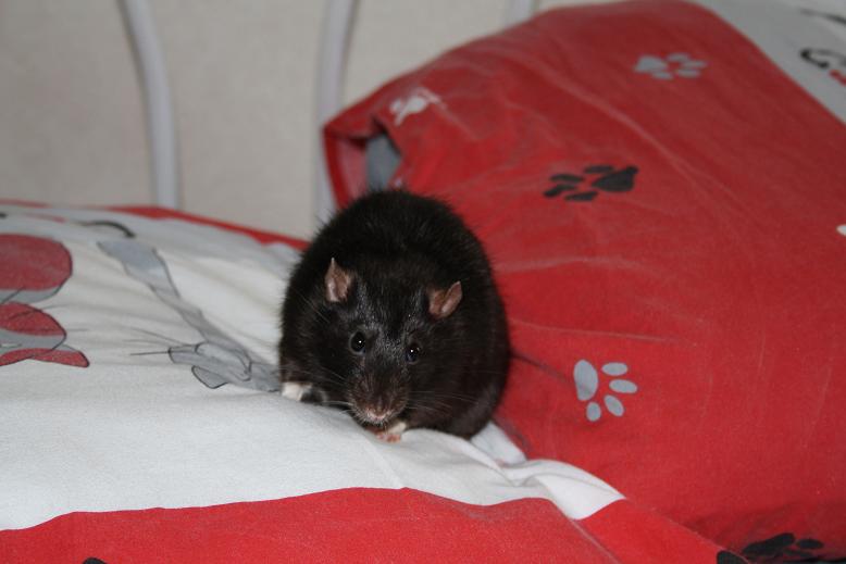 Becaria 0 Posté(e) le 26 septembre 2010 Suite à ma rupture avec l'homme, je n'avais plus de Reflex... jusqu'à hier où j'ai craqué, je voulais des photos souvenirs du passage de certaines misses à la maison, et de la saillie de 51... me revoilà donc avec quelques photos ^^51 sa majesté, 840g, on ne bouge pas. Patate, préfère rester dans la cage a surveiller le territoire que se balader. Devrait kikiter dès la semaine prochaine si tout va bien ^^Chivas, 440g, toujours ratte dans sa tête. Lui a très bien compris qu'il y avait de la nana à l'horizon... mais il devra attendre encore un peu avant son dépucelageDHP Desperados, 215g, ma pile électrique qui adore jouer avec la main, courrir en tout sens, bref, LE raton de base Et les nanas, commençons par la moman IND Akina, 385g, qui était un peu farouche au départ, mais le pouvoir du surimi l'a emporté XD [img][/img]Et miss LRK Rubis, 295g, joyau de la couronne, promise du 51, qui est juste adorable, léchouilleuse, une crème quoi, je pouvais pas rêver mieux comme reine pour mon roi doré ^^ Partager ce message Lien à poster Partager sur d’autres sites
