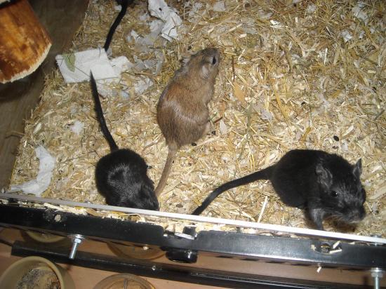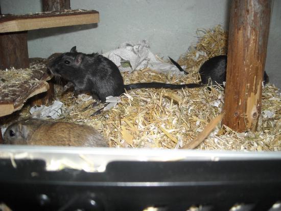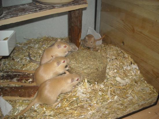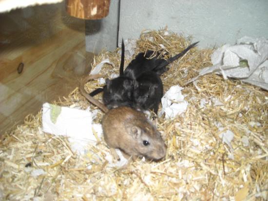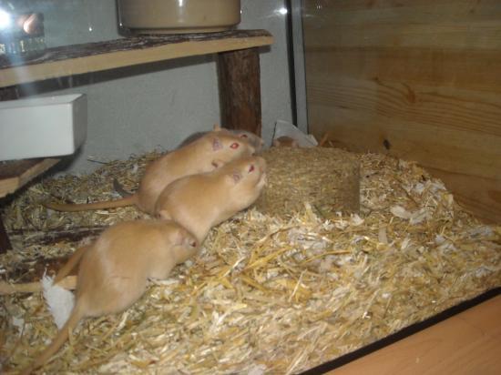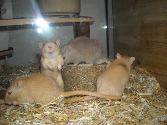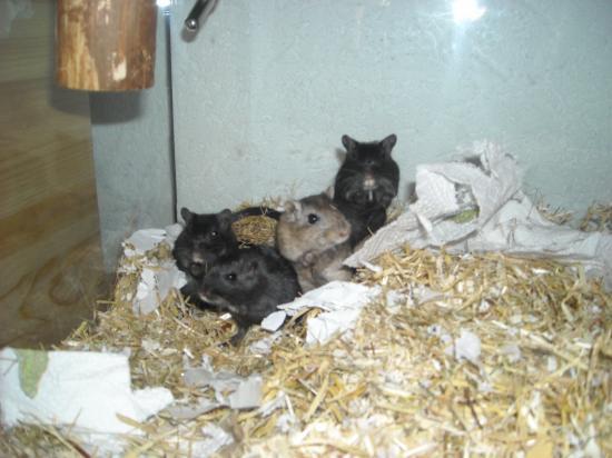 athenia 0 Posté(e) le 2 juin 2010 Bonjour à tous !Second sauvetage dans la même semaine pour Jalisko qui s'est déplacée en France pour pouvoir récupérer 12 gerbilles d'une soit-disant éleveuse...Je crois que les gens ne se rendent plus comptent à quel point un élevage de gerbilles demande du temps, de l'argent et énormément de connaissances...Bref, une surpopulation suite à plusieurs naissances non désirées. Des conditions de détention catastrophiques, à tel point que Jalisko en a vomi tellement l'odeur était forte. Quand on sait que les gerbilles ne sentent quasiment rien des semaines durant, vous imaginez le truc.Jalisko a récupéré 12 gerbilles, mais un des mâles est décédé, il n'en reste donc plus que 11 à l'adoption... Tout d'abord un groupe de 4 mâles d'environ 8/9 mois. 3 Black et 1 Nutmeg (Muscade). Ils sont très peureux mais en laissant la main dans l'habitat ils viennent quand même de curiosité. Leur adoptant devra donc les apprivoiser, mais à première vue rien d'impossible. Ensuite un groupe de 5 mâles d'environ 5/6 mois. 4 Red Fox (Miel aux yeux rouges avec le ventre miel aussi) et 1 Lilac (gris foncé aux yeux rouges). Apparemment ce groupe s'est battu car le Lilac a un bout d'oreille en moins, certaines ont la queue tordue avec des traces de morsures, morsures aussi sur le museau. Jalisko les soigne pour cela. Il y a aussi une femelle Red Fox (Miel aux yeux rouges avec le ventre miel aussi). Et enfin, et non le moindre, un mâle Sapphire (gris moyen aux yeux rouges) en très mauvais état, adulte mais âge indéterminé. Il a une patte arrière en moins car il a vécu avec des souris qui lui ont bouffé ! Jalisko a décidé de le garder.Les voici par famille d'accueil :=> Chez Naomi à Dompierre (Fribourg) :- 1 mâle Black d'environ 11 mois- 2 mâles Black + 1 mâle Nutmeg (Muscade) d'environ 11 mois => Adoptés CorinneSi vous souhaitez les adopter, merci d'envoyer un email à cette adresse : lea.cretenet@gmail.com=> Chez Jalisko à Fleurier (Neuchâtel) :- 1 femelle Red Fox (Miel aux yeux rouges avec le ventre miel) de moins d'1 an- 3 mâles Red Fox (Miel aux yeux rouges avec le ventre miel) d'environ 5/6 mois => Adoptés par la famille Boldini- 1 mâle Red Fox (Miel aux yeux rouges avec le ventre miel) + 1 mâle Lilac (gris foncé aux yeux rouges) d'environ 5/6 mois => Adoptés Marie- 1 mâle Sapphire d'âge inconnu => Adopté JaliskoSi vous souhaitez les adopter, merci d'envoyer un email à cette adresse : lea.cretenet@gmail.comATTENTION : En tant que gerbilles de sauvetage elles sont interdites à la reproduction ! Elles méritent de rester tranquille jusqu'à la fin de leur vie !Récapitulatif :- 11 gerbilles adultes Red Fox, Lilac, Sapphire, Black, Nutmeg- pas de reproduction- cage non fournie- adoption sous contrat associatif- co-voiturage accepté si nous ou vous connaissez la personne- diffusion de cette annonce acceptée avec lien vers leur page d'adoptionLeur page sur notre site : http://apag.e-monsite.com/rubrique,11-gerbilles-frib-neuch,396571.htmlPhotos :Les 4 mâles Black & Nutmeg (Muscade) d'environ 11 mois :La femelle Red Fox (son compagnon est décédé) de moins d'1 an :Les 5 mâles Red Fox & Lilac :Le petit mâle Sapphire handicapé : Partager ce message Lien à poster Partager sur d’autres sites