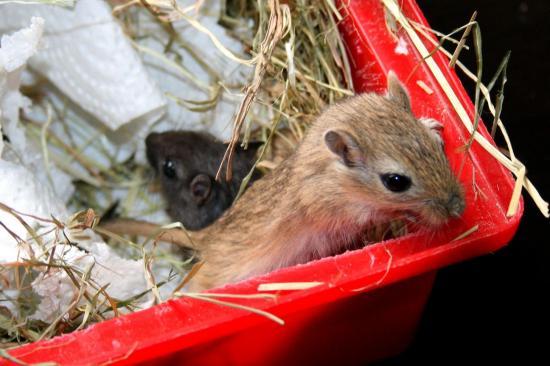 athenia 0 Posté(e) le 2 juin 2010 Bonjour à tous !Alors qu'ils se promenaient tranquillement au bois de Vincennes en début janvier sous la pluie, la famille Gabriel a aperçu un monticule de copeaux à côté d'un arbre. En s'approchant ils ont vu un autre petit tas au pied de cet arbre. 3 gerbilles en sont sorti, trempées et frigorifiées.Une personne les a abandonnées là, renversant le bac à litière sur le sol, peut-être espérait-elle qu'elles survivraient ?Le truc incroyable c'est que la famille n'a eu aucun mal à approcher les gerbilles et les prendre. Elles leur ont grimpé dans la main et se sont réfugiées directement dans leurs vêtements ! Hallucinant.Aucun des passants n'en a voulu, ils les ont donc ramené chez eux et ont déposé des petites annonces mais personne d'intéressé. Bien sûr, ils n'étaient pas du même sexe et 5 bébés sont nés le 17 février. A mon avis c'est sûrement la raison de leur abandon. La femelle devait être complètement épuisée car les petits sont... minuscules, et a du enchaîner les portées car elle n'en a pas eu le mois suivant. Je vais la garder 30 jours pour écarter tout risque de gestation.Ils sont tous super sociaux, les adultes viennent facilement vers la main, n'ont absolument pas peur, très curieux, facilement manipulables. Pour le moment je vais garder tout le monde à la maison car les petits sont vraiment mais vraiment trop chétifs et ont donc encore besoin des adultes auprès d'eux.Vous verrez les photos, j'ai mis côte à côte un petit de ce sauvetage (6.5 semaines) à côté d'un bébé d'un autre sauvetage de 4 semaines. Celui de 6.5 semaines est plus petit que celui de 4 semaines !!! Pire, à côté d'une gerbille de 8 semaines... Enfin bon regardez les photos c'est plus parlant. La mamounette a mis bas 4 petits le mardi 20 avril 2010. Autrement dit ils ne seront pas adoptables avant le 08 juin 2010. Au premier sexage il y aurait 3 femelles et 1 mâle.Voici les groupes :- 1 femelle Black d'environ 1.5 ans + 1 femelle Agouti de 3 mois+ 2 bébés femelles Black + 1 bébé femelle Agouti nées le 20/04/2010- 1 femelle Agouti + 1 femelle Black de 3 mois => Adoptées Louise- 1 bébé mâle Black né le 20/04/2010- 2 mâles Agouti d'environ 1.5 ans + 1 mâle Agouti + 1 mâle Black nés le 17/02/2010 => Adoptés PierreElles se trouvent chez Charly à Ermont (95).Pour les adopter merci d'envoyer un mail à Charly (charlygamegie@aol.com) ou à l'APAG (emailapag@aol.fr).ATTENTION : En tant que gerbilles de sauvetage elles sont interdites à la reproduction ! Elles méritent de rester tranquille jusqu'à la fin de leur vie !Récapitulatif :- 12 gerbilles Agouti et Black- pas de reproduction- cage non fournie- adoption sous contrat associatif- co-voiturage accepté si nous ou vous connaissez la personne- diffusion de cette annonce acceptée avec lien vers leur page d'adoptionLeur page sur notre site : http://apag.e-monsite.com/rubrique,12-gerbilles-dans-le-95,674777.htmlPhotos :Les bébés :Les femelles :Les mâles :Comparatif avec jeune de 4 semaines (à droite) :Comparatif avec jeune de 8 semaines (en haut) : Partager ce message Lien à poster Partager sur d’autres sites