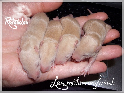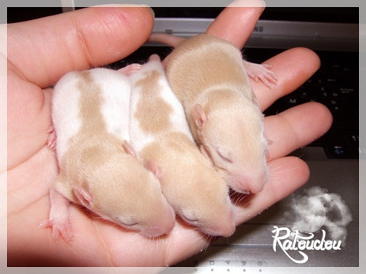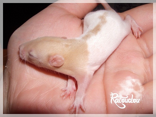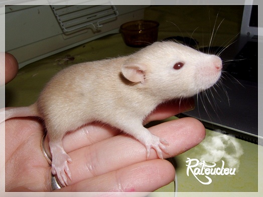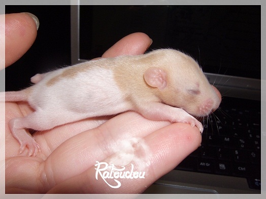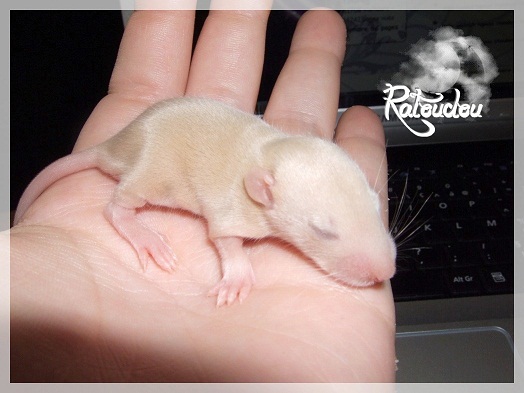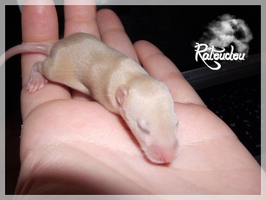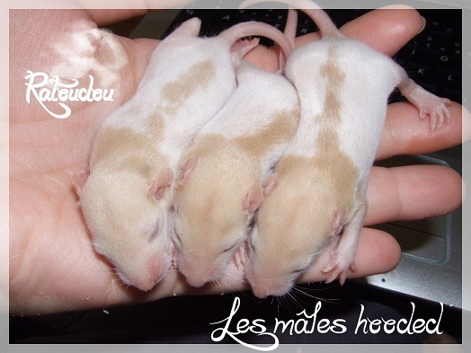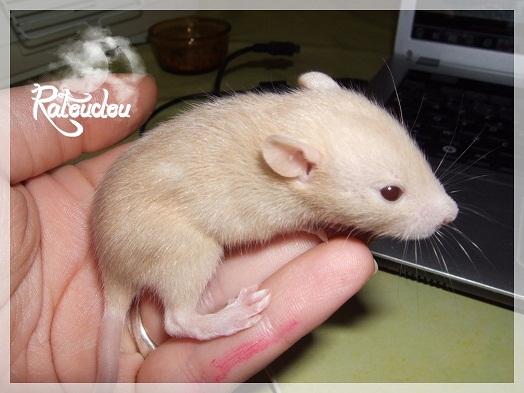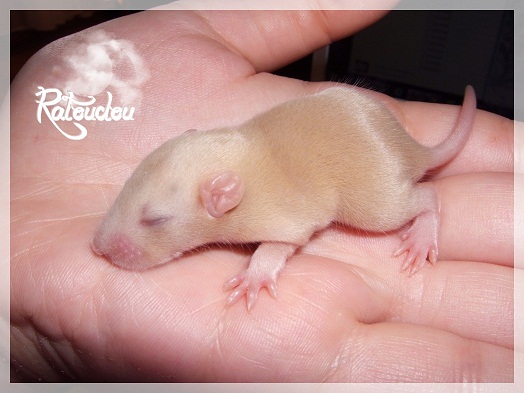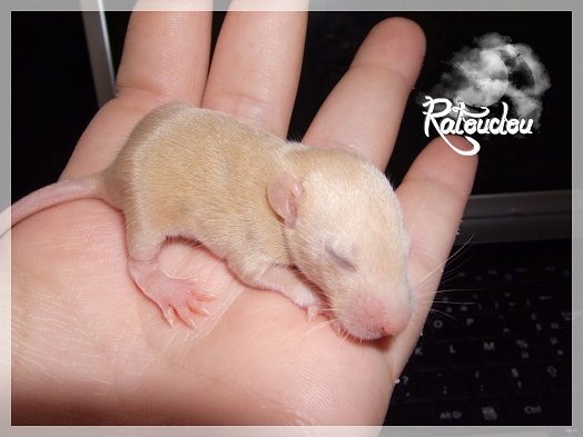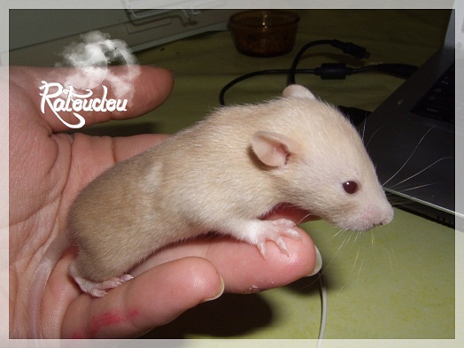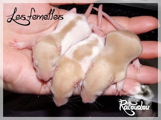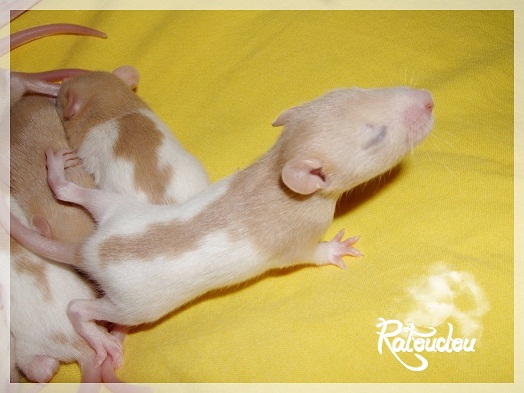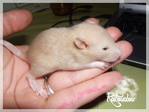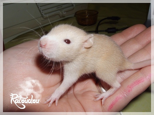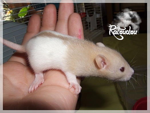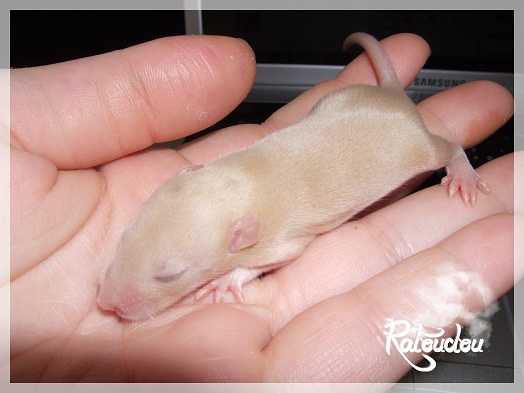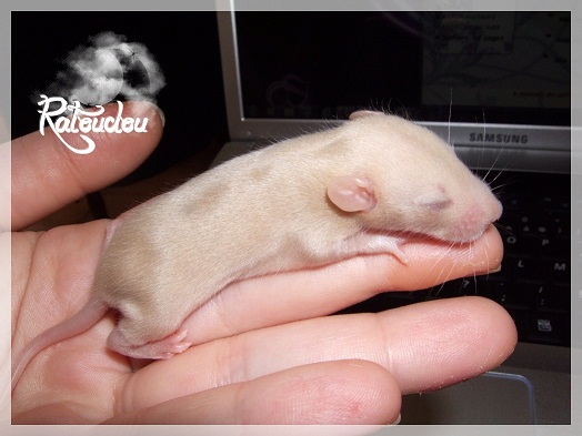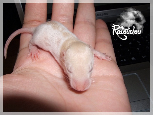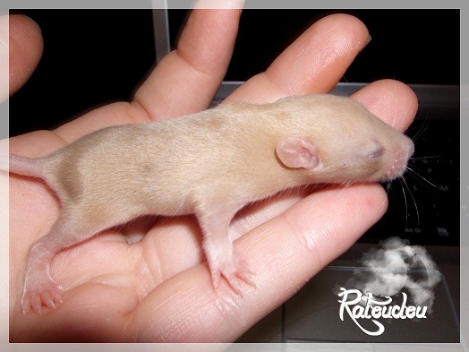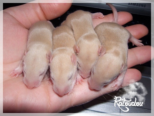 sev255 0 Posté(e) le 12 septembre 2011 Date de naissance de la portée : 02 septembre 2011 dans l après-midi@ Nom du Père : MDT Pimousse* Description : hooded topaze standard lisse* Provenance : Mordu-de-rats en Belgique* Généalogie : - Père : Brutus , uni topaze standard lisse (particulier, février 08 - 14/05/10 vieillesse)- Mère : MDT Shyva , hooded platine agouti standard lisse (née le 21/05/09 - 04/01/11 inconnu, calme amitieuse réservée)- - -> Père : Kira, irish bleu us standard lisse (animalerie Tom&Co Nalinnes, né fin décembre 08 - 16/08/11 vieillesse, calin calme curieux amitieux paternel, un poils dominant)- - -> Mère : Lili, hooded topaze standard lisse (particulier, née fin décembre 08, calme simpa - décédée récemment de vieillesse en 2011 mais perdu la date à cause du LORD qui a supprimé sa fiche...)- - - - - -> Père : agouti lisse standard- - - - - -> Mère : hooded topaze standard lisse* Numéro d'inscription au LORD : MDT17165M* Date de naissance : 10/12/09* Poids à la saillie : 650grs environ* Autres informations : cest un rat parfaitement intégré qui ne pose pas de problème dans le groupe (même avec de nouveau arrivants), il est cool et gentil, étant plus jeune il était assez impulsif (je pense que cest pour ça que les essais avec Kayna en mars ont échoué, il cherchait à la dominer plus quautre chose..)Il a toujours été en parfaite santé, même pas un rhume contrairement à certains de mes mâles!!> http://ratterieratoudou.e-monsite.com/rubrique,mdt-pimousse,334377.html@ Nom de la Mère : Kayna* Description : unie topaze standard lisse* Provenance : élevage La Ferme du Odentale dans le 57 (tenant aussi une animalerie) * Généalogie : - Père : topaze standard lisse (élevage "la ferme du odentale" 57)- Mère : topaze standard lisse (élevage "la ferme du odentale" 57)* Numéro d'inscription au LORD : INC20749F* Date de naissance : 16/06/10* Poids à la saillie : 315grs* Autres informations : une ratte très sociable, avec du caractère tout de même, joueuse, marrante, aimant assez le contactJamais été malade non plus. Cest sa 2nd portée.> http://ratterieratoudou.e-monsite.com/rubrique,kayna,355554.html@ La portée :* Nombre de petits : 11 bébés sont nés (dont 1 mort-né), seulement 3 femelles pour 7 mâles* Informations complémentaires : Je souhaite redémarrer une "lignée" de RED en espérant avoir le moins de problèmes possible (notamment tumeurs), recule possible seulement sur la fratrie/famille de Pimousse (précisions à venir, 1 soeur décédée à 1 an 8 mois cause inconnue, 1 soeur décédée à presque 5 mois raison non précisée sur le LORD, 1 frère décédé à 4 mois 1/2 accidentellement chez le veto suite à castration)* date d'adoption possible : à partir du 15 octobre au 6 semaines des ratons* Participation financière demandée : 12€ demandé par raton pour participer au frais délevage (envoie demandé à la 3ème semaine des ratons pour valider la réservation)* départements d'adoption possibles : Doubs 25 à coté de la Suisse (possibilité de s'arranger pour des covoiturages notamment dans les grandes villes comme Lyon, Paris, Strasbourg...)d'autres covoiturages acceptés si sérieux (à vous de vous organiser), ou alors vous vous déplacez..* vos conditions d'adoptions :- avant tout, lire tout ce qui concerne l'adoption http://ratterieratoudou.e-monsite.com/categorie,conditions-et-tarifs,1203615.html- remplir le questionnaire http://ratterieratoudou.e-monsite.com/rubrique,questionnaire-adoptants,16971.html- avoir déjà des rats du même sexe que le raton souhaité, sinon les adopter au minimum par 2- avoir une cage suffisament grande- offrir à vos rats une litière et alimentation adaptées- accordez du temps et des sorties régulières à vos rats- leur donner les soins nécessaires et soins vétérinaires en cas de problèmes- me donner régulièrement des nouvelles, j'en demande pas tout les mois mais de temps en temps, le plus important et j'insiste là dessus étant de me tenir informée en cas de problèmes de santé ou tout autres soucis.- les ratons de cette portée ne seront pas tous autorisés de reproduction, les droits de repro seront très limités, à moi en priorité, ensuite à voir au cas par cas, je tiens à suivre convenablement la descendance.* Vos coordonnées : sev993@hotmail.fr ou par mp@ Photoooooooos :Les 3 femelles : 2 hooded et 1 unie/irish topaze? standard lisseLes 3 mâles hooded topaze? standard lisseLes 4 mâles uni/irish topaze? standard lisse (celui de gauche me parait plus clair, peut-être un platine agouti???...) Partager ce message Lien à poster Partager sur d’autres sites