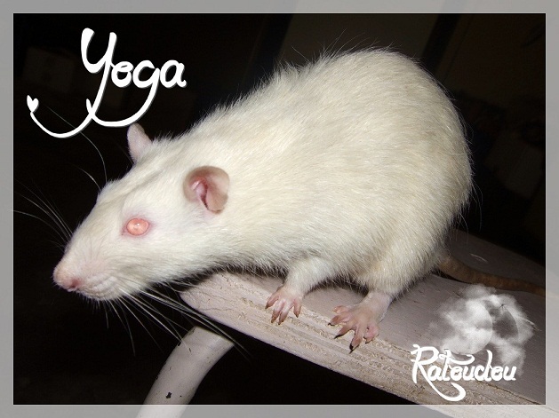 sev255 0 Posté(e) le 12 février 2012 Date de naissance de la portée 20 janvier 2012 en fin de matinéeNom du Père : Yoga* Description : albinos standard lisse* Provenance : récupéré fin aout 2011 suite à un replacement, à la base il vient d'animalerie* Généalogie : inconnue* Numéro d'inscription au LORD : INC27060M* Date de naissance : 14/04/2010* Poids à la saillie : environ 500gr* Autres informations : à son arrivée il était un peu méfiant, rien d'anormal... (on me l'avait aussi décrit comme étant plus trouillard que son copain de cage), depuis, son intégration c'est passé sans difficultés et très rapidement, il c'est fait des copains qu'il apprécie, il n'aime pas spécialement le contact/les calins mais n'est pas pour autant sauvage, toujours à la porte quand je vais m'occuper d'eux, il vient de lui même et se laisse approcher et prendre en mains, il est sociable, très gentil et neutre, un poils joueur/vif.Depuis que je l'ai il n'a absolument eu aucuns soucis de santé (si ce n'est des poux (rapidement traité)=> sa page sur mon site : http://ratterieratoudou.e-monsite.com/pages/content/yoga.htmlNom de la Mère : RTD Eywa* Description : capé étoilé Black Eyed Siamoise seal point dumbo velours* Provenance : née à la maison* Généalogie: - Père : RTD Melo, hooded siamois seal point dumbo rex (19/07/09 - 11/09/11 vieillesse)- - -> Père : RTD Frisson, uni siamois seal point standard velour (20/06/08-17/06/10 vieillesse+bronchite)- - - - - -> Père : Alaska, supposé hooded siamois seal point standard velour (décédé début juin 08 à plus de 2 ans)- - - - - -> Mère : Passoa, unie siamoise blue point dumbo lisse (10/07/07-16/07/09 inconnue)- - - - - - - - -> Père : Pépito, uni bleu us dumbo lisse- - - - - - - - - - - -> Père : husky agouti dumbo lisse- - - - - - - - - - - -> Mère : Lilith, bleu us dumbo lisse- - - - - - - - -> Mère : Dumbo, hooded siamoise seal point dumbo lisse- - - - - - - - - - - -> Père : Pépito '2', bleu us standard lisse- - - - - - - - - - - -> Mère : siamoise dumbo lisse- - -> Mère : Swaïli, hooded siamoise seal point standard rex (08/09/08-24/11/10 vieillesse)- - - - - -> Père : inconnu- - - - - -> Mère : Willow, siamoise seal point standard rex- Mère : Linoa , capé étoilé Black Eyed Himalayenne seal point standard lisse (10/02/10 (opérée le 22/11/11 d'une tumeur mammaire bénigne, pas de récidive))- - -> Père : inconnu- - -> Mère : patché noir standard lisse (décédée à son arrivée chez Deborah, problème suite à la mise bas qui a malheureusement trainé) * Numéro d'inscription au LORD : RTD25616F* Date de naissance : 24/04/11* Poids à la saillie : 378grs* Autres informations : c'est une ratte équilibrée, qui a du tempérament, adorable et sociable, bonne entente dans le groupe, très active aussi, elle est assez indépendante dès qu'il s'agit de sortir et faire la folle!Un très bon gabarit et une bonne santé jusqu'ici, elle fait une bonne maman, protectrice les 1ers jours mais depuis je peux toucher les bébés comme je veux.=> sa page sur mon site : http://ratterieratoudou.e-monsite.com/pages/content/rtd-eywa.htmlLa portée :* Nombre de petits : 15 bébés sont nés de leur union, 8 femelles pour 4 mâles et 3 mort-nés, tous standard, une grande majorité de yeux noir et de poils velours.Malheureusement une petite femelle aux yeux noir a "disparu" le 2ème jour =(Femelle himalayenne standard velours = à adopterFemelle himalayenne standard velours = à adopterFemelle Black Eyed Himalayenne standard lisse = à adopterFemelle Black Eyed Himalayenne standard velours = à adopterFemelle Black Eyed Himalayenne standard velours = à adopterFemelle Black Eyed Himalayenne standard velours = à adopterMâle himalayen standard velours = à adopterMâle himalayen standard velours = à adopter* Informations complémentaires : Portée faite dans le but de continuer ma lignée et mon travail sur une autre branche, avec certes le risque de l'inconnu avec Yoga, mais qui a un âge très correct et une santé nikel, idem pour Eywa* date d'adoption possible : à partir du weekend du 03/04 Mars 2012 si les ratons évoluent bien* Participation financière demandée : 12€ demandé par raton pour participer au frais d'élevage (à envoyer au plus tot pour valider votre réservation)* départements d'adoption possibles : - Ratons à venir chercher dans le Doubs 25230 (en frontière Suisse)- Covoiturages possible sur Paris 75 , Lyon 69 , Alsace 68/69...autres destinations à voir, je ne m'occupe pas de tout!* vos conditions d'adoptions :- avant tout, lire tout ce qui concerne l'adoption http://ratterieratoudou.e-monsite.com/categorie,conditions-et-tarifs,1203615.html - remplir le questionnaire http://ratterieratoudou.e-monsite.com/rubrique,questionnaire-adoptants,16971.html - avoir déjà des rats du même sexe que le raton souhaité, sinon les adopter au minimum par 2- avoir une cage suffisament grande- offrir à vos rats une litière et alimentation adaptées- accordez du temps et des sorties régulières à vos rats- leur donner les soins nécessaires et soins vétérinaires en cas de problèmes- me donner régulièrement des nouvelles, j'en demande pas tout les mois mais de temps en temps, le plus important et j'insiste là dessus étant de me tenir informée en cas de problèmes de santé ou tout autres soucis.- Très peu de ratons seront reproductibles, 4 maximum, 2 restants chez moi donc potentiellement 2 droits de repro à discuter.* Vos coordonnées : sev993@hotmail.fr Partager ce message Lien à poster Partager sur d’autres sites