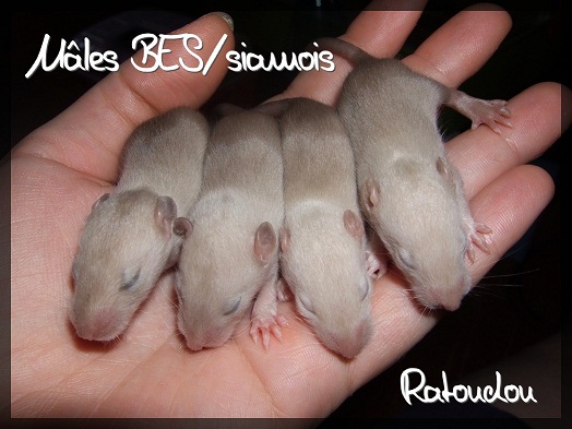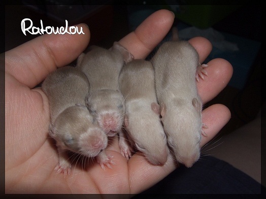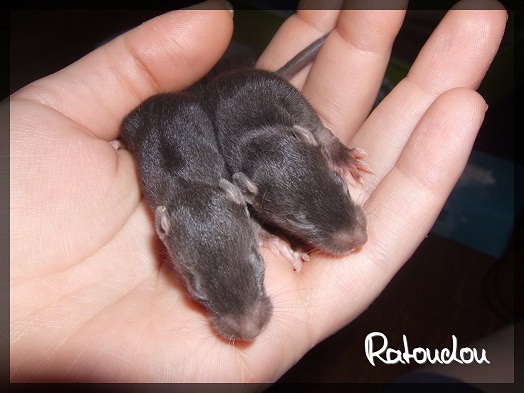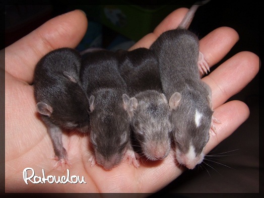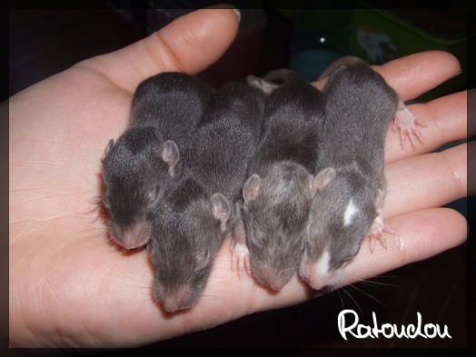 sev255 0 Posté(e) le 1 août 2012 Date de naissance de la portée 18/07/2012Nom du Père : RB. Lucifer* Description : REDevil english irish standard lisse* Provenance : René Bastiaans Hollande* Généalogie : * Numéro d'inscription au LORD : RB.29648M* Date de naissance : approximativement 01/10/2011* Poids à la saillie : bon gabarit* Autres informations : Lucifer ne m'appartient pas (du moins pas encore), il est à Théoraux, mais pour des raisons personnelles il va bientot venir vivre à la maison avec ses 2 copainsDescription de Lucifer par Théoraux : "Lucifer est sans aucun doute le rat le plus calme de mon groupe. Il passe son temps à dormir et il faut vraiment le motiver pour qu'il daigne lever son popotin ... C'est donc un rat patate, très cool avec les autres rats, pas dominant pour un sous. Il est assez grasouillet ce qui est en lien, je pense, avec son manque d'activité évident !"Nom de la Mère : RTD Epoxy* Description : unie BES dumbo lisse* Provenance : née à la maison* Généalogie : (Epoxy est consanguine à 12.5%, consanguinité non voulue mais pas malsaine)- Père : RCT Loki, uni siamois seal point dumbo lisse (27/03/10 - 06/07/12 vieillesse)- - -> Père : Phénix, siamois seal point dumbo lisse (particulier, 02/03/09 - 15/12/11 vieillesse)- - -> Mère : FDO Cannelle, siamoise seal point dumbo lisse (élevage du 57 "la ferme du odenthal" 14/02/09 - 16/04/11 vieillesse)- Mère : RCT Meryl, unie Black Eyed Siamoise seal point standard lisse (01/01/11)- - -> Père : inconnu, 2 pères potentiels, soit Phénix (père de Loki) soit RCT Shadow (frère de Loki), 2 siamois dumbo lisse- - -> Mère : RB. Chance, unie black eyed siamoise seal point standard lisse (30/06/10)* Numéro d'inscription au LORD : RTD28262F* Date de naissance : 22/10/2011* Poids à la saillie : 333grs* Autres informations : Epoxy est une très belle ratte, sociable, douce, sans aucuns soucis de santé ou autre, c'est aussi une bonne mèreLa portée :* Nombre de petits : 13 ratons ont vu le jour* Informations complémentaires :Suivi de la portée visible ici http://ratterieratoudou.e-monsite.com/pages/les-naissances/portee-de-rtd-epoxy-x-rb-lucifer-1.htmlRatons adoptables visibles ici http://ratterieratoudou.e-monsite.com/pages/adoption/Petits toujours disponibles :Mâle uni siamois standard lisseMâle uni BEDevil noir standard lisseMâle uni BES standard lisseMâle uni siamois standard lisseMâle uni BEDevil noir standard lisseMâle uni REDevil noir standard lisseMâle uni BES standard lisse* date d'adoption possible : fin août 2012* Participation financière demandée : 12€ demandé pour chaque raton, payable d'avance afin d'officialiser votre réservation.* départements d'adoption possibles : dans le Doubs 25 (Montbéliard)Possible covoiturages, sur Paris 75 de sur, et à voir pour Lyon 69, Alsace 67/68 ou autres selon les demandes (possible sur la Suisse jusqu'à Yverdon)* vos conditions d'adoptions :- avant tout, lire tout ce qui concerne l'adoption http://ratterieratoudou.e-monsite.com/categorie,conditions-et-tarifs,1203615.html - remplir le questionnaire http://ratterieratoudou.e-monsite.com/rubrique,questionnaire-adoptants,16971.html - avoir déjà des rats du même sexe que le raton souhaité, sinon les adopter au minimum par 2- avoir une cage suffisament grande- offrir à vos rats une litière et alimentation adaptées- accordez du temps et des sorties régulières à vos rats- leur donner les soins nécessaires et soins vétérinaires en cas de problèmes- me donner régulièrement des nouvelles, j'en demande pas tout les mois mais de temps en temps, le plus important et j'insiste là dessus étant de me tenir informée en cas de problèmes de santé ou tout autres soucis.- de préférence adoptable pour la compagnie (mais possible droits de reproduction à discuter sérieusement)* Vos coordonnées : sev993@hotmail.fr Partager ce message Lien à poster Partager sur d’autres sites